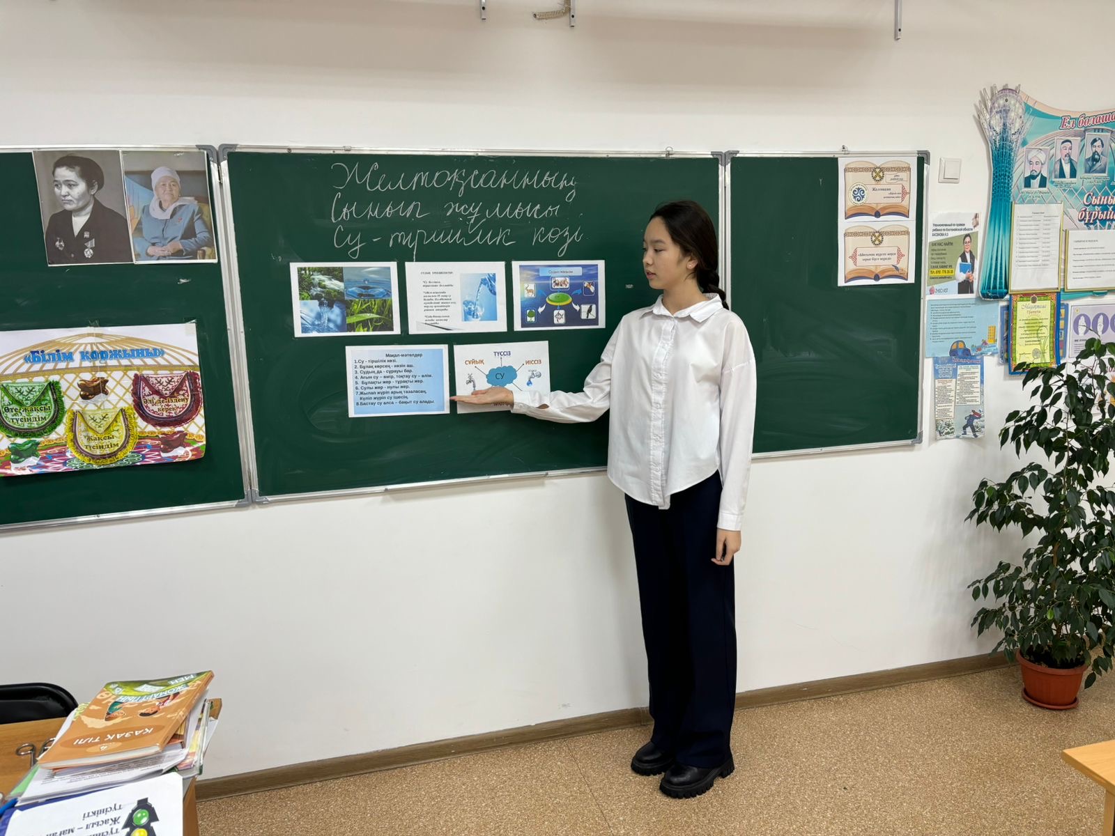 Жыл сайын ауыз су қорының мөлшері күрт азайып келеді. Ішуге жарамды су мәселесі – ең өзекті әрі жаһандық мәселелердің бірі, себебі әрбір адамның өмірі мен әл-ауқаты судың қолжетімділігіне байланысты. Жаһандық мәселелер әлемдік деңгейде шешіледі, алайда әрбір адам табиғатты қорғауға өз үлесін қосуы қажет. Сол себепті біздің мектепте су туралы сынып сабақтары өткезілді.